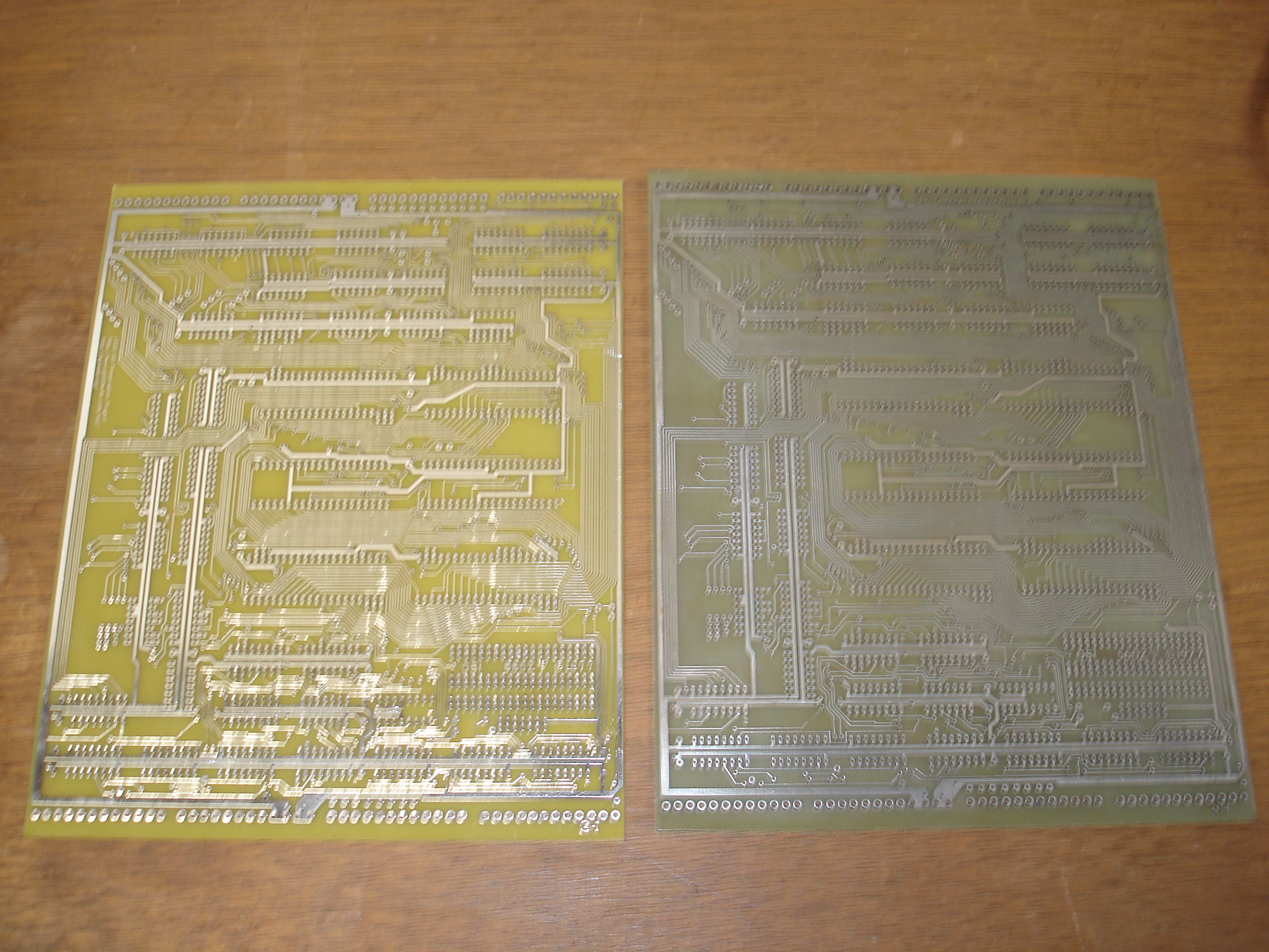 While I was working on duplicating the board from an original, Grant (KlyBall), another OSI hacker who had reproduced several Ohio Scientific boards, was also working on a reproduction. His board was made from schematics and a fresh layout that mimiced the look and placement of the original board. He got his board in before my small batch arrived, and started a thread on the osiweb.org forums, which you can read here. He also prepared a .LOD formatted file with the driver software, which is critical in bringing up and testing the 560Z. His .LOD image can be used with a serial based OSI system with no disk drives.